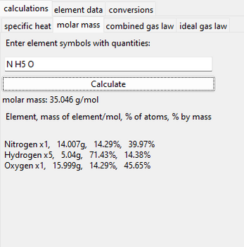 This app was designed to help with basic chemistry calculations. It includes:
