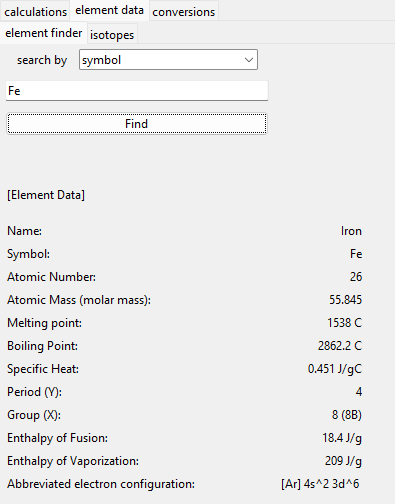 - An easy-to-use element lookup with tons of data